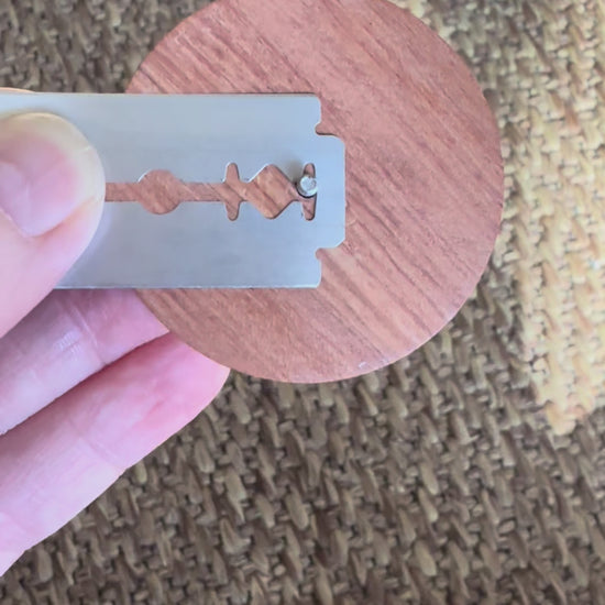 Elevate your sourdough scoring with this crafted wooden bread lame, designed for precision and artistry. Made from rich, warm-toned wood and finished with a striking mandala-style pattern etched into the surface, this lame is as beautiful as it is functional.