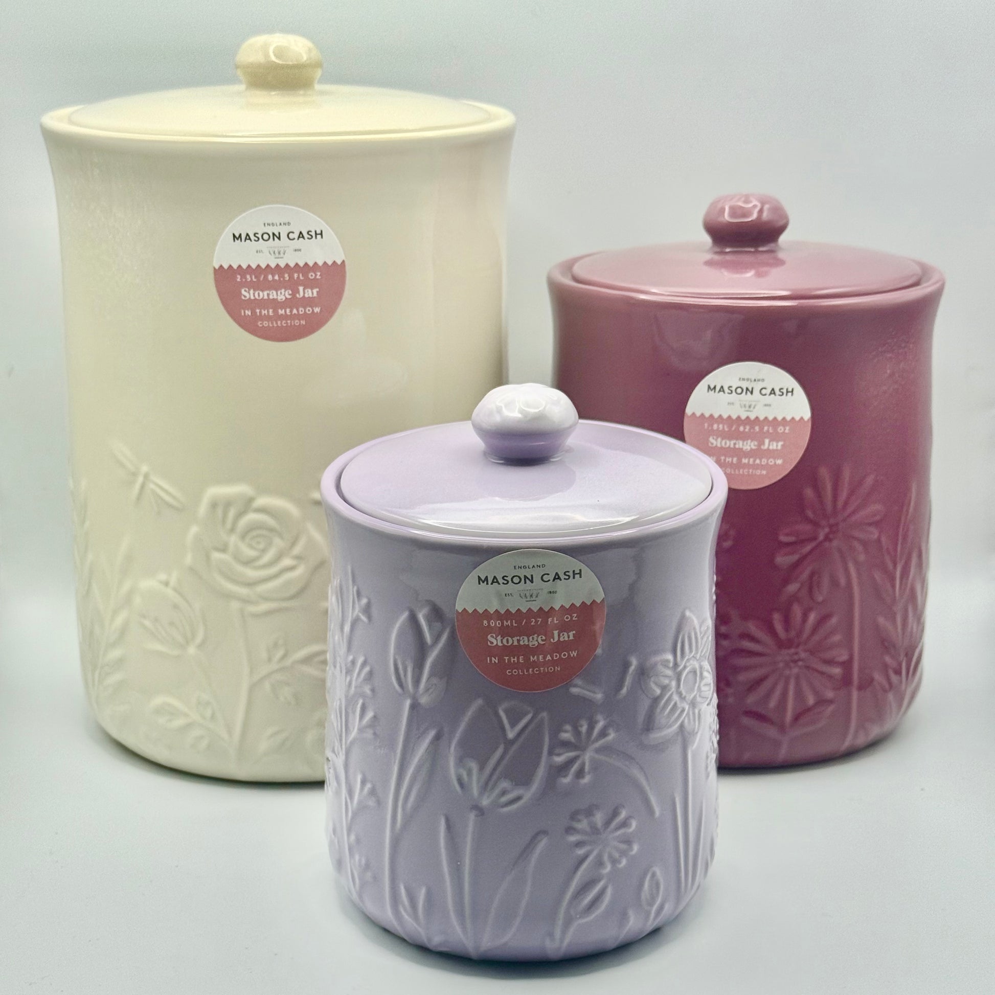 The Mason Cash In the Meadow collection is intricately embossed with delicate florals and foliage in a beautiful colour palette, making it a perfect addition to any kitchen. These storage jars combine charm with practicality, helping to keep your worktop neat and organised. Made from durable stoneware, each jar includes an airtight fitted lid to keep contents fresh.
